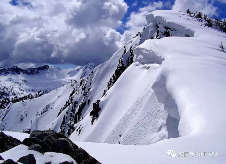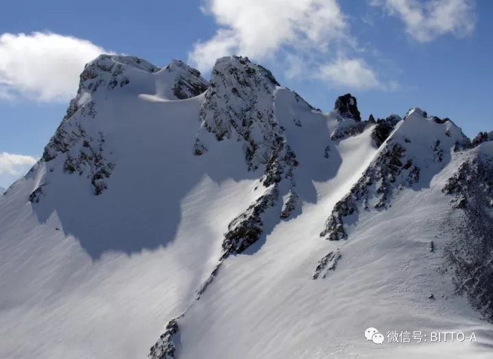 雪柔情似水,轻轻的将山岭包裹起立,只剩下山顶的部分还没有完全被大雪覆盖。如果将山峰用线条勾勒出来该是什么样的!